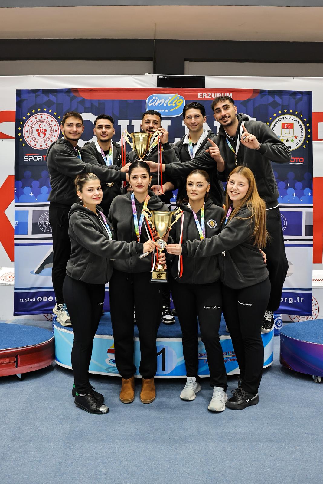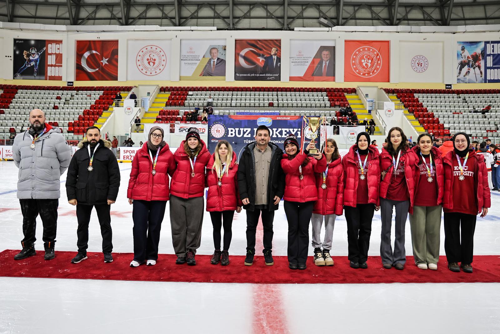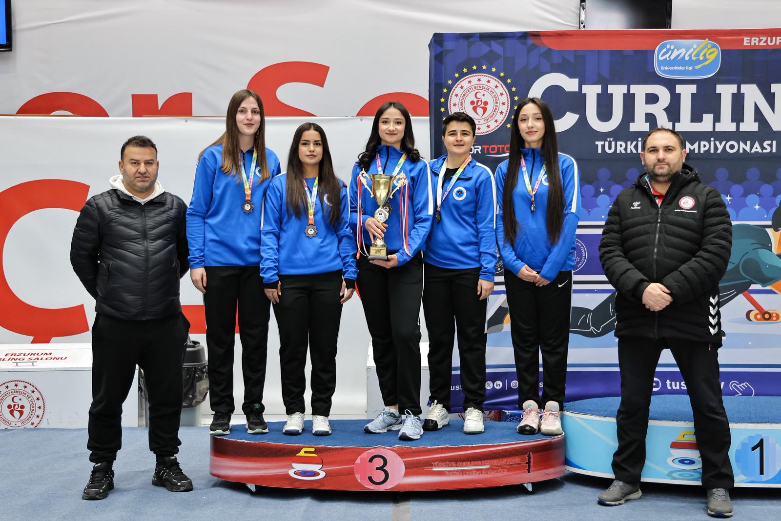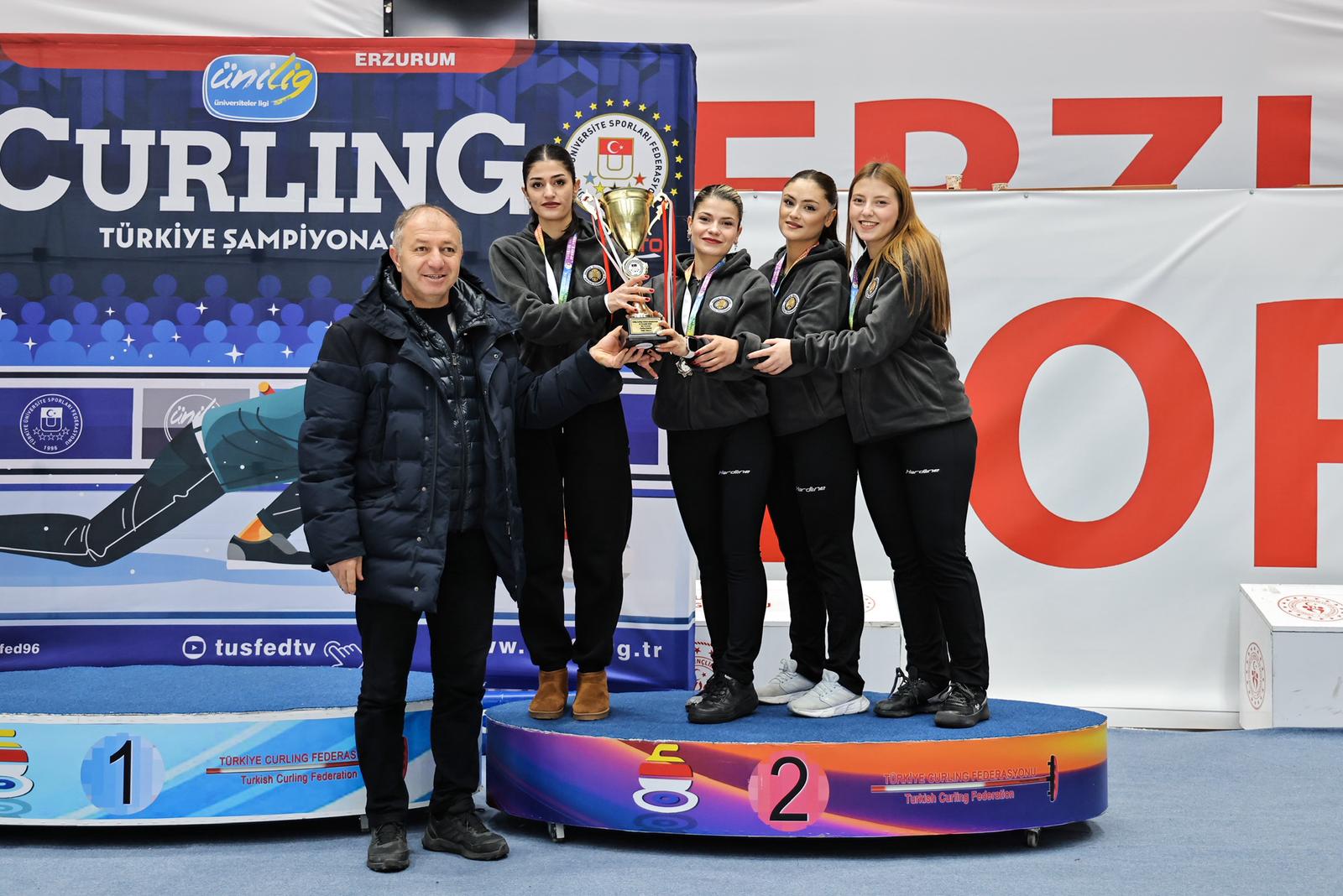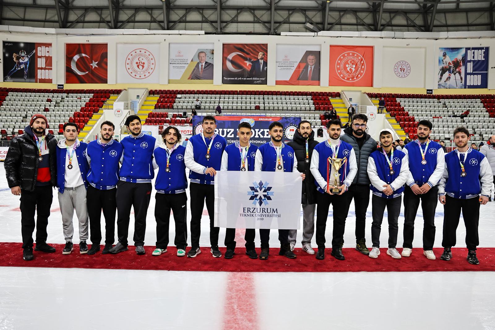 Türkiye Üniversite Sporları Federasyonu (TÜSF) tarafından Erzurum’da düzenlenen Ünilig Kış Sporları Oyunları, buz hokeyi ve curling branşlarında oynanan müsabakaların ardından ödül töreniyle tamamlandı. Organizasyon, üniversite sporcularının centilmence mücadelesine sahne oldu.