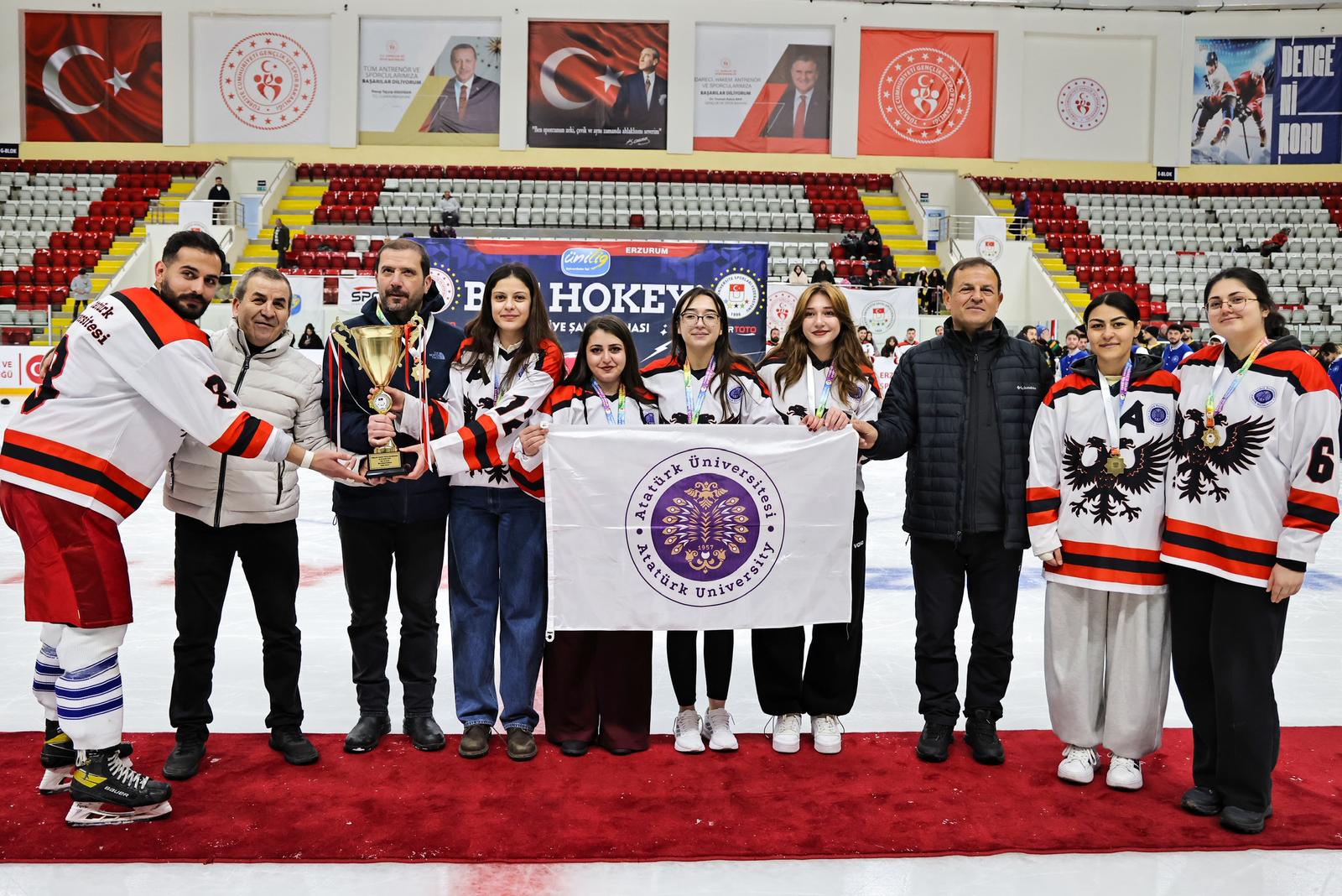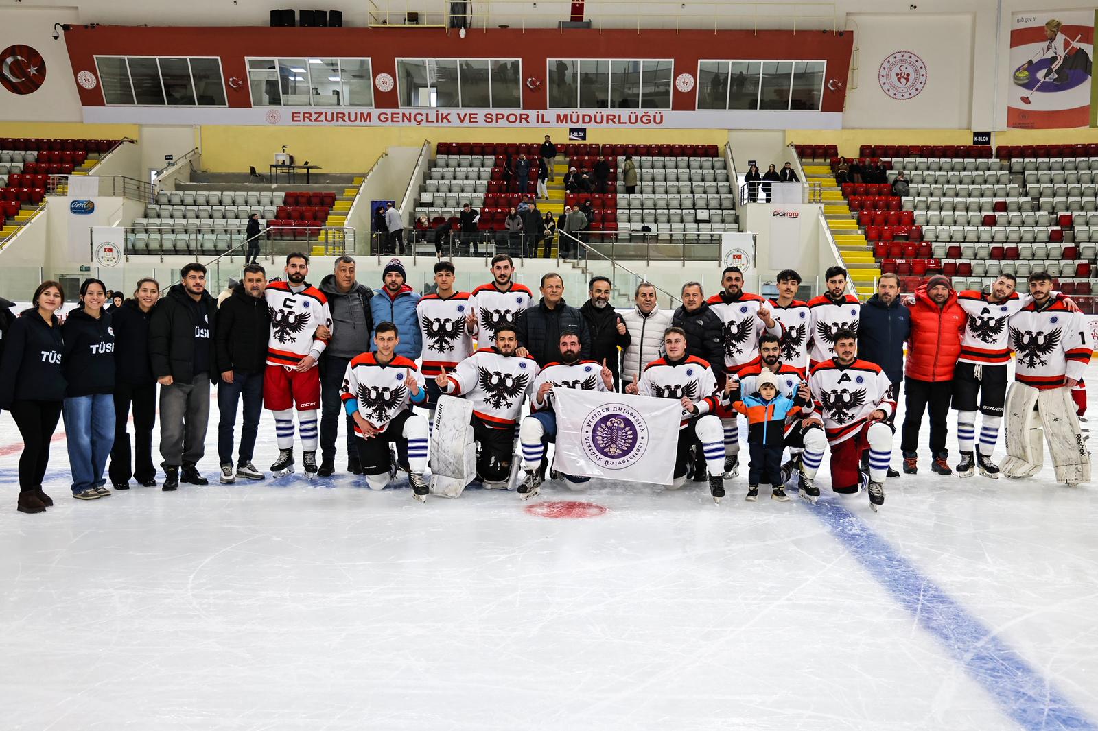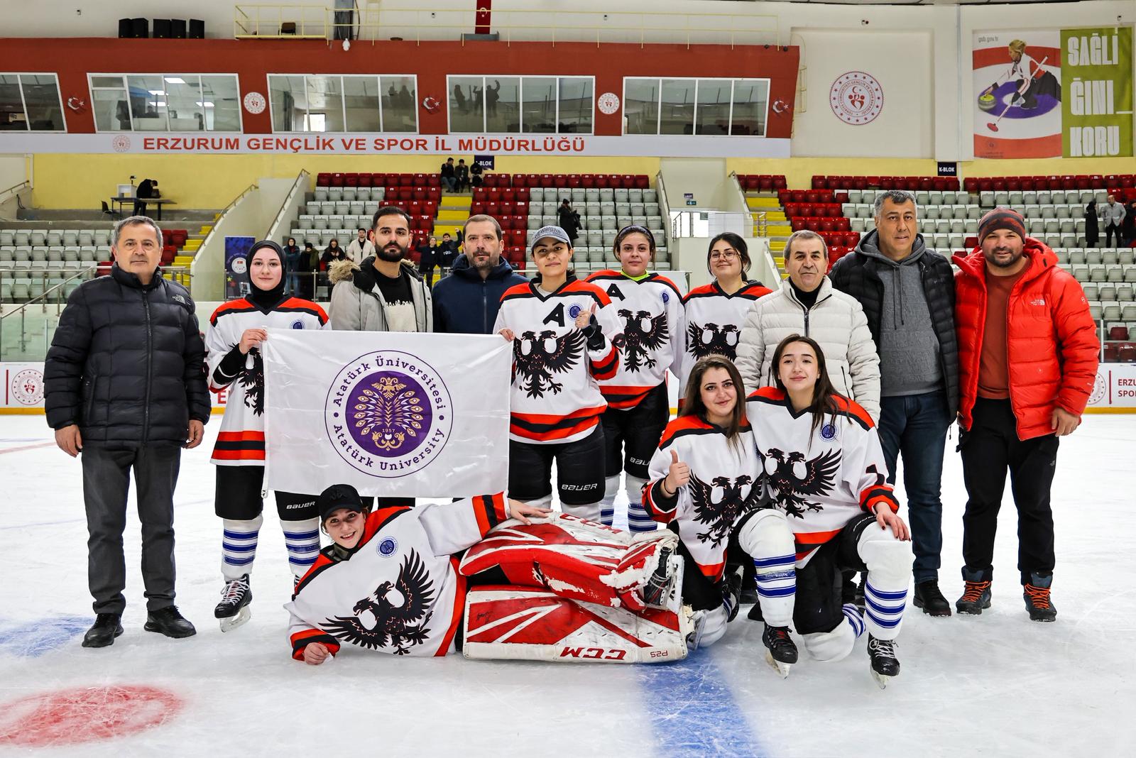 Türkiye Üniversite Sporları Federasyonu tarafından Erzurum’da düzenlenen Ünilig Kış Sporları Oyunları kapsamında gerçekleştirilen buz hokeyi ve curling müsabakaları, ödül töreninin ardından sona erdi.