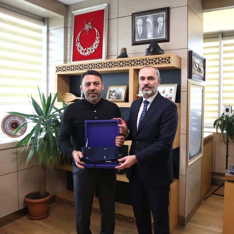 Türkiye Üniversite Sporları Federasyonu (TÜSF) Başkanı ve Bayburt Üniversitesi Rektörü Prof. Dr. Mutlu Türkmen, Gençlik ve Spor Bakan Yardımcısı Hamza Yerlikaya’yı makamında ziyaret etti.