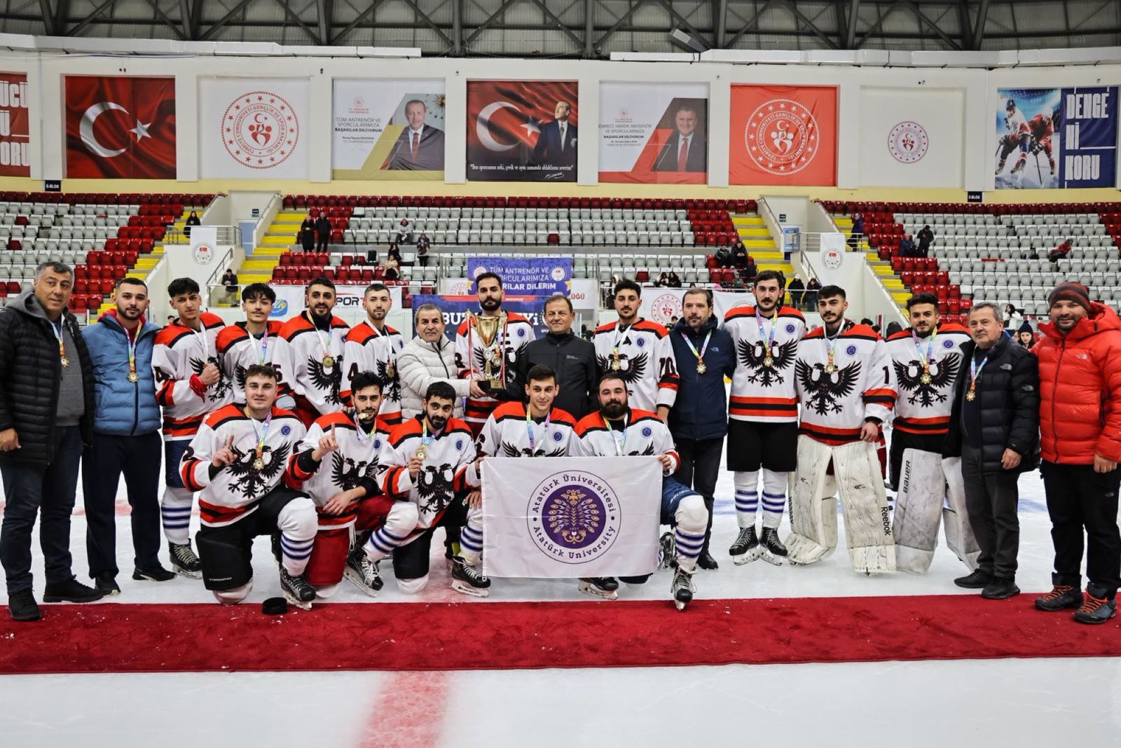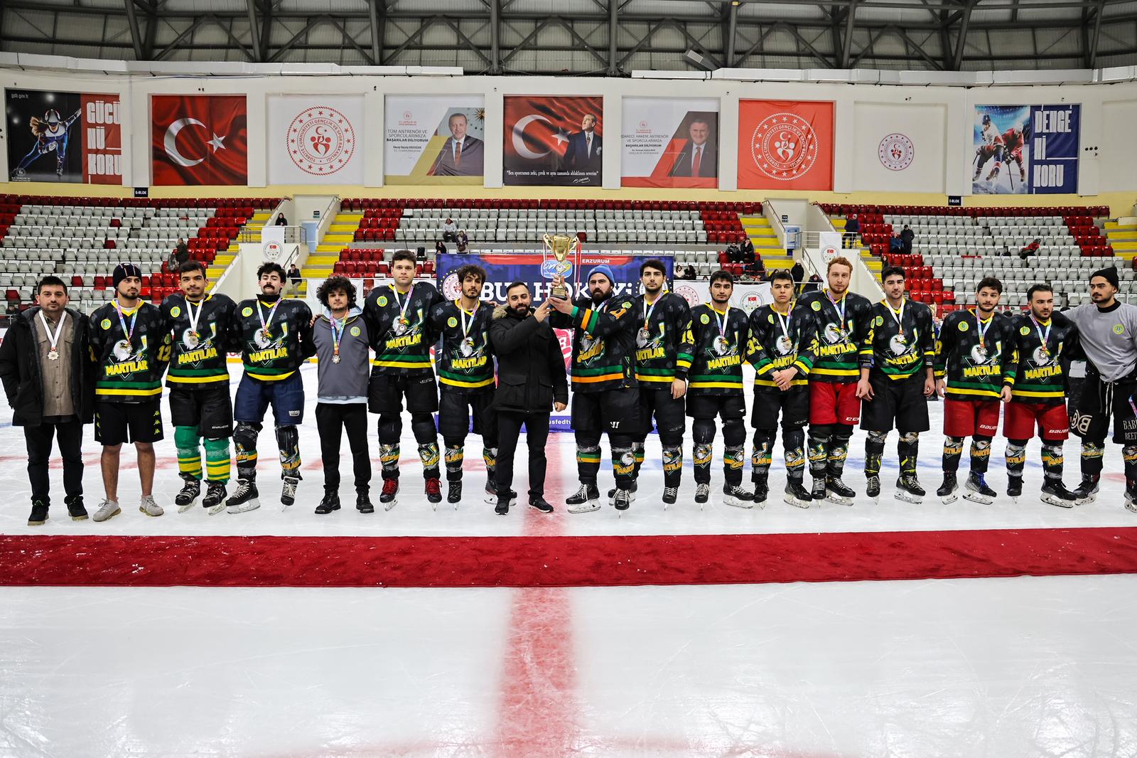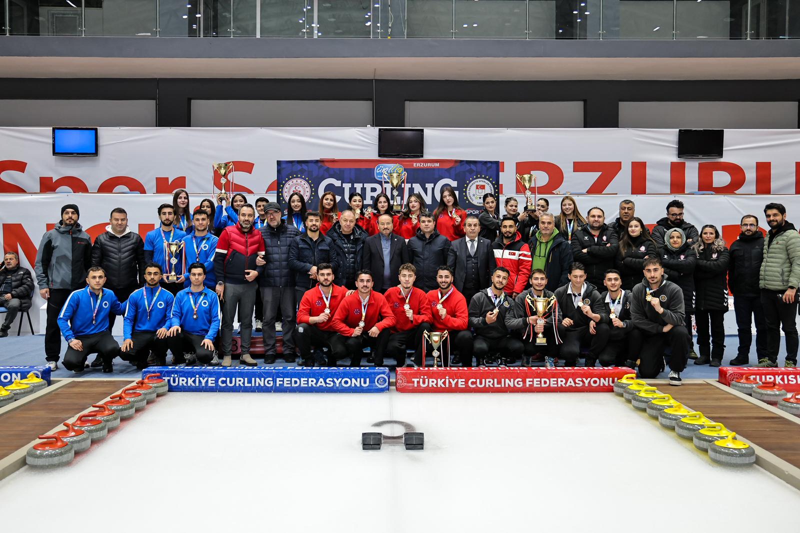 Türkiye Üniversite Sporları Federasyonu tarafından Erzurum’da düzenlenen Ünilig Kış Sporları Oyunları kapsamında gerçekleştirilen buz hokeyi ve curling müsabakaları, ödül töreninin ardından sona erdi.