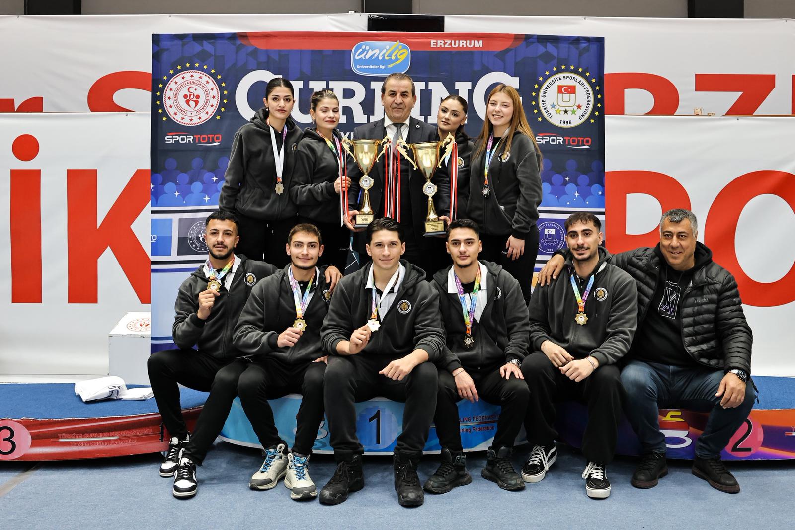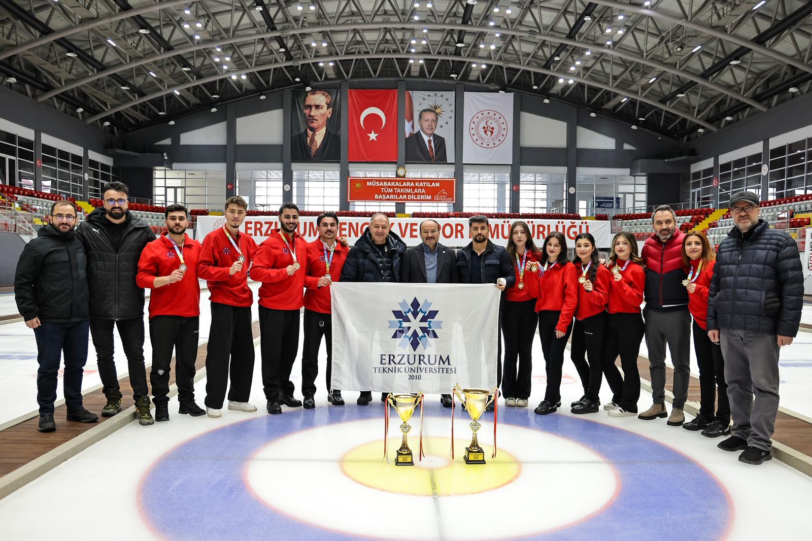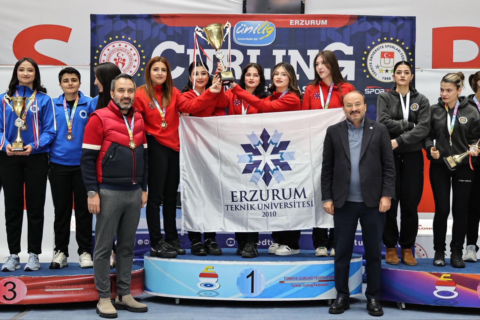 Türkiye Üniversite Sporları Federasyonu (TÜSF) tarafından Erzurum’da düzenlenen Ünilig Kış Sporları Oyunları, buz hokeyi ve curling branşlarında oynanan müsabakaların ardından ödül töreniyle tamamlandı. Organizasyon, üniversite sporcularının centilmence mücadelesine sahne oldu.