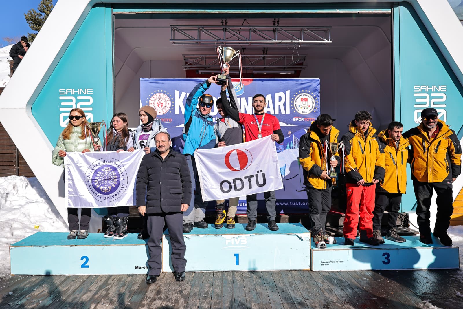 Açılış töreninin ardından Kar Voleybolu Türkiye Şampiyonası’nı dereceyle tamamlayan sporcular ile Kayak Kuzey Disiplini, Kayak Alp Disiplini, Snowboard Slalom ve Kayaklı Koşu branşlarında dereceye giren sporculara madalya ve kupaları takdim edildi.